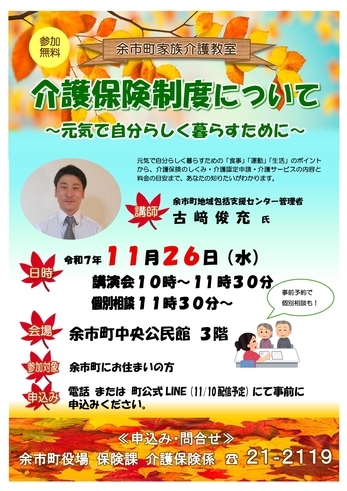 地域で暮らす介護が必要な方とそのご家族を支えるために、町民の介護知識の普及などを目的として「家族介護教室」を開催します。