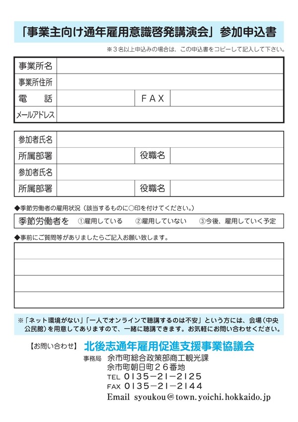 申込用メールアドレス:syoukou★town.yoichi.hokkaido.jp(★を@に変えて送付してください)